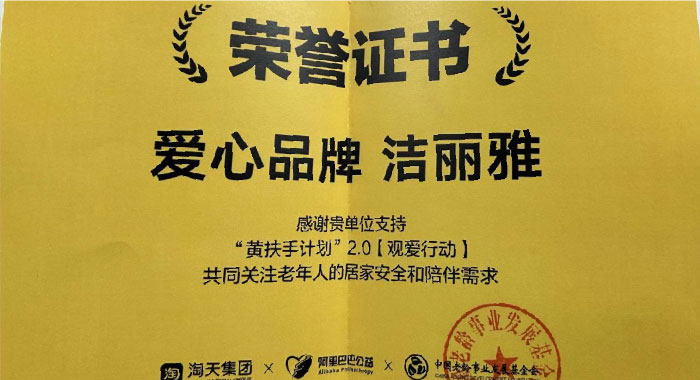 潔麗雅集團在發展過程中,積極履行社會責任參與公益事業,助力社會和諧發展, 倡導"綠葉不忘根, 致富不忘本, 鐵肩擔道義,不舍祖德蔭"。
